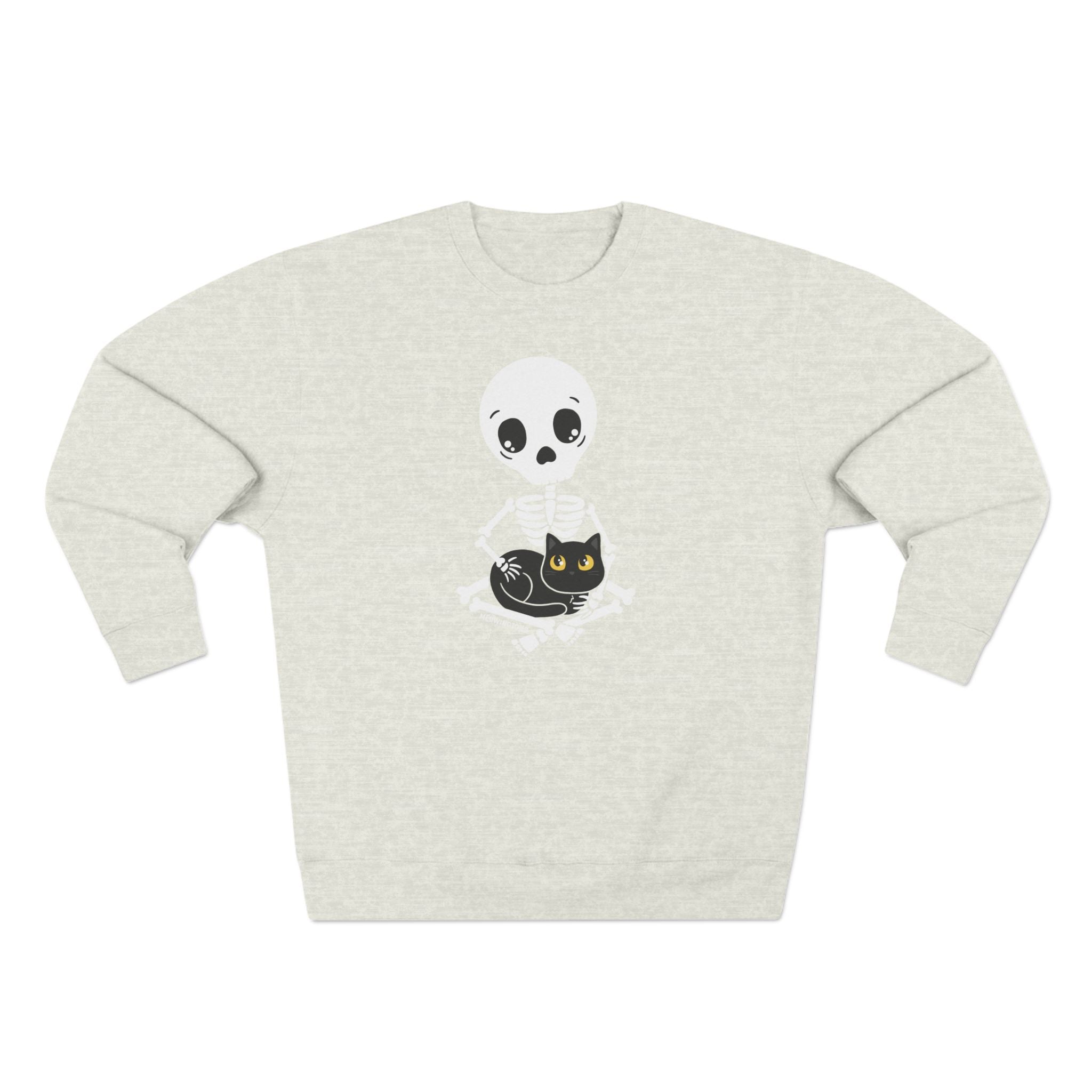 Creep it cute this Halloween with the all-new Friends Forever Skeleton Cat Crewneck Sweatshirt! This limited-edition Halloween sweatshirt features Skullivan the skeleton cozily snuggling up to Smokette, their black cat and best friend. These forever friends will keep you warm on all your autumnal adventures – and beyond – whether you’re crunching fall leaves underfoot or showing off your love for all things Halloween. Pair this creepy-cute crewneck with your favorite cat scarf for an irresistibly adorable look this season!