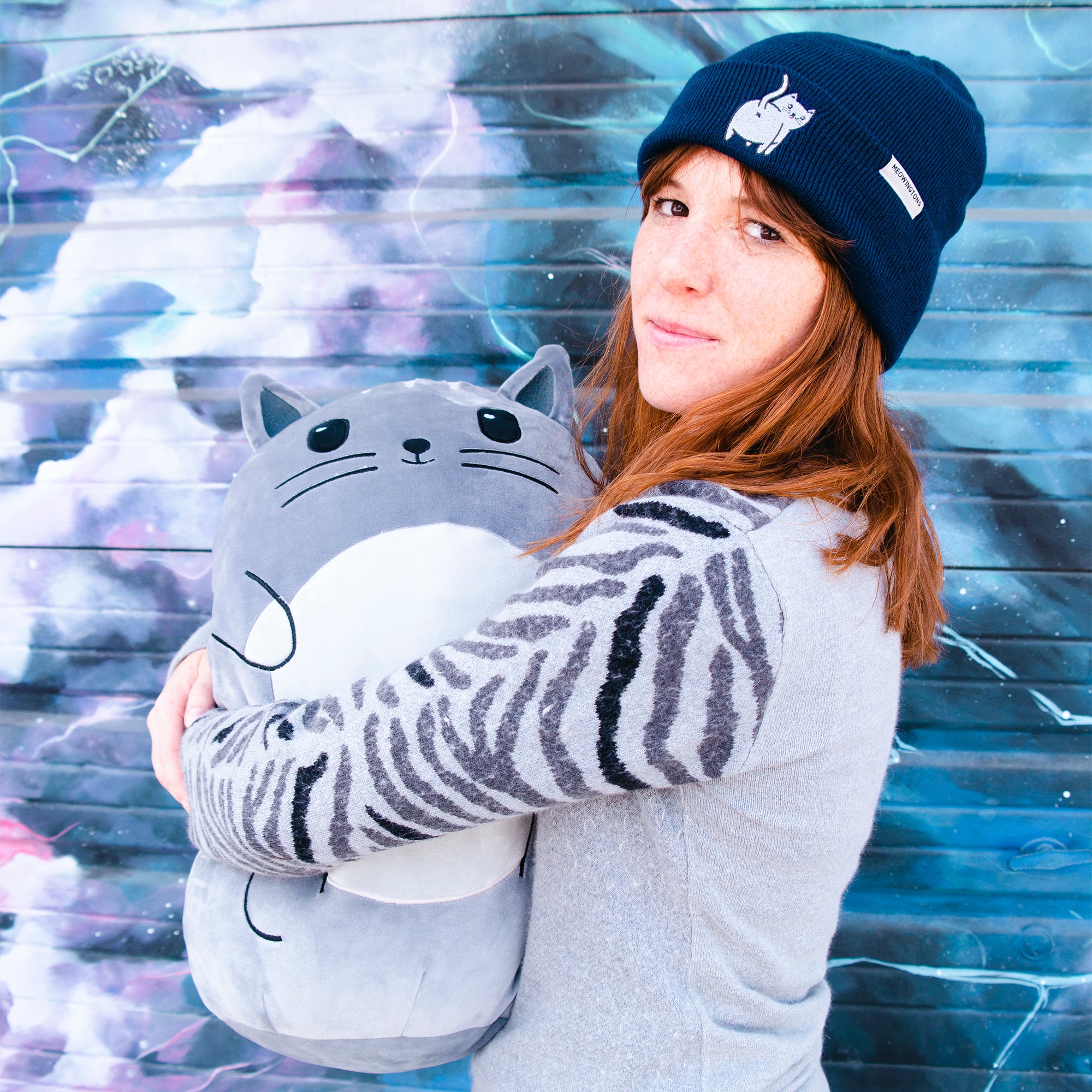 If you’re looking for a cute cat plushie to add to your collection, Milton is more than ready to take that spot. And don't miss out on the dynamic duo of Milton and Millie! Millie the Cat is the co-star of our daily comic and now comes in a matching squishy plush, too! Our model is styling our Milton's Cat Butt Beanie
