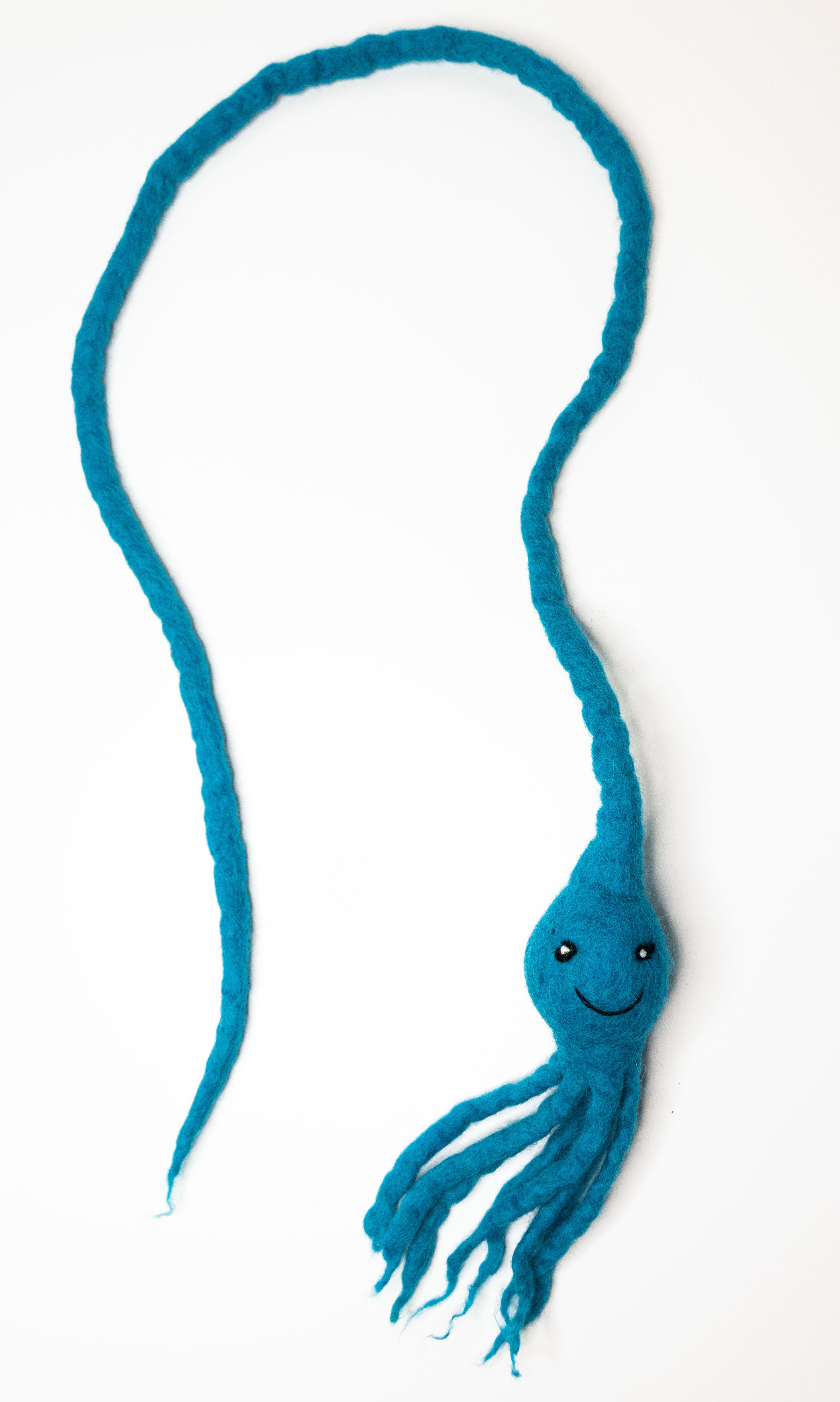 All-Natural, Organic Materials: Crafted for your cat’s ultimate comfort, health, and well-being, each Sea Monster Rattle Teaser Cat Toy is felted by hand from all-natural, eco-friendly wool treated with completely organic dye and no harsh chemicals. The rattle is filled with locally sourced recycled materials.