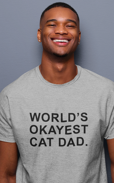Each World’s Okayest Cat Dad T-Shirt is screen printed for crisp, clear high-quality print.