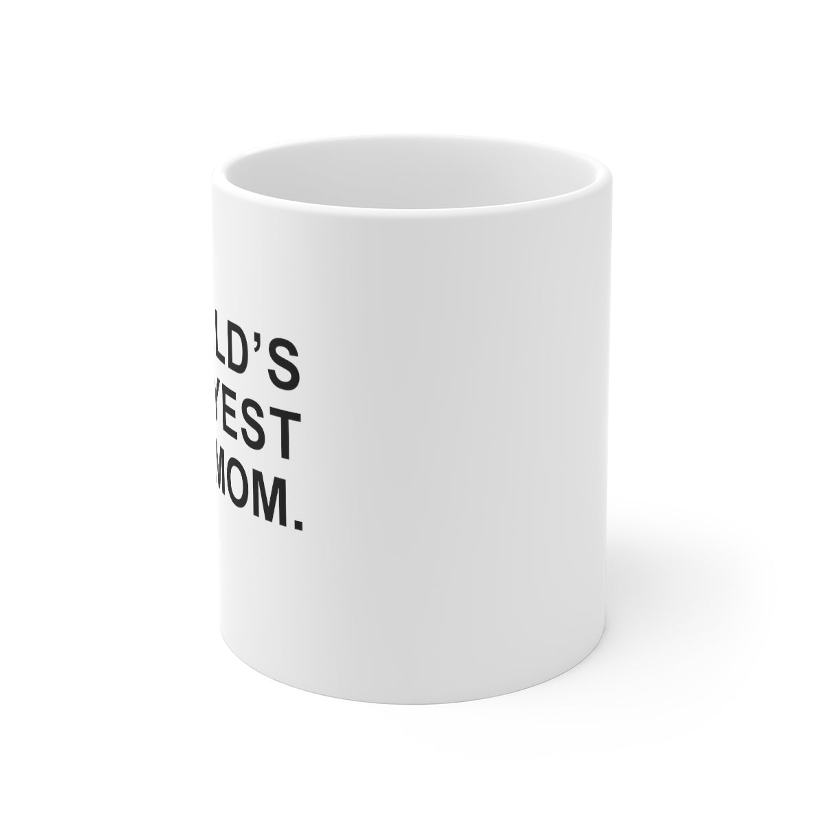 Our World’s Okayest Cat Mom Mug incorporates a fun blend of minimalist text design with the dry humor that only a true cat lover will appreciate. This ceramic cat mug holds up to 11 ounces of your favorite hot beverage. It is the purr-fect size to wrap your hands around on a cold morning or a cold day at work.